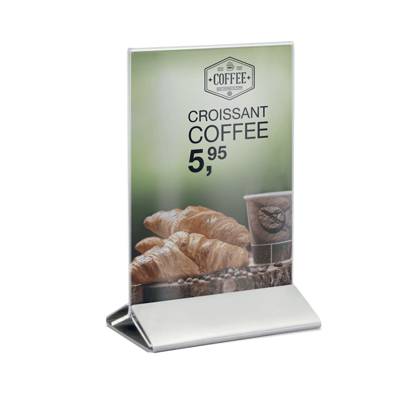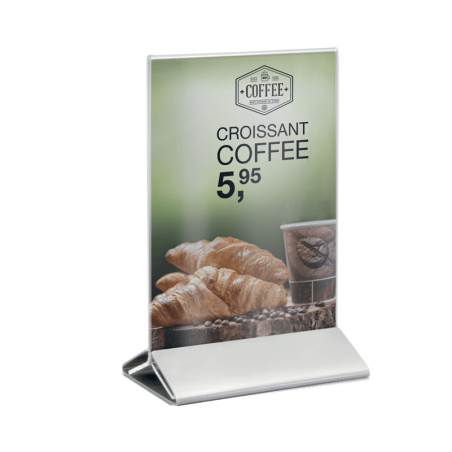 16.57 € TTCPoster frame with weatherproof stainless steel base, double-sided easy-to-clean acrylic surface in A5 format, ideal for signage in restaurants and breweries, very stable