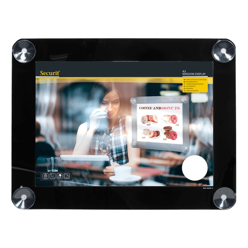 • Porte-affiches à ventouses A3 - noir ou gris SECURIT Porte-affiches