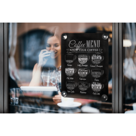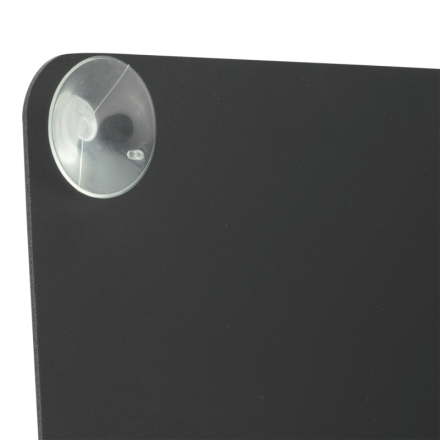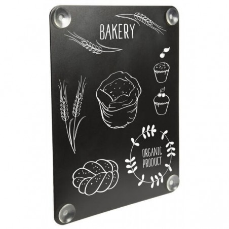 18.55 € TTCArdoise format A4 dotée de 4 ventouses pour vitre, résiste aux UV, dispose de 2 face, à utiliser des feutres craie