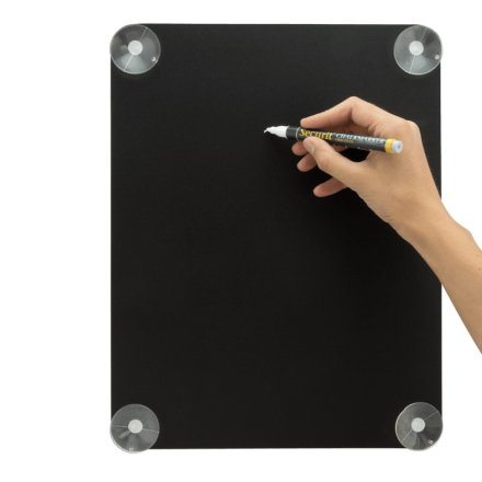 Munie de 4 ventouses, cette ardoise A4 vous permettra d'écrire une information ou un petit mot de manière originale sur une vitre ou une porte vitrée, par exemple "ouvert" ou "fermé", ou encore "merci ou "au revoir".