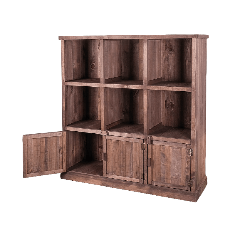 This professional rustic display cabinet is made entirely of solid pine, light and robust at the same time, with a gray / taupe finish that will be the most nice effect in your shop. It has 9 storage compartments + 3 doors with nice finishes.
