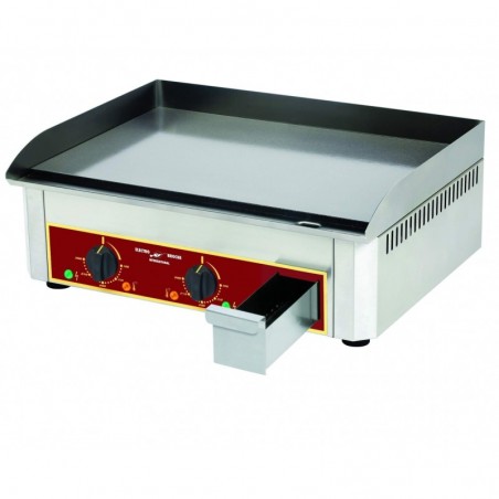 Conçue pour la restauration traditionnelle et dans les camions-restaurants, la plancha gaz ELECTROBROCHE possède une plaque de cuisson en acier lisse particulièrement épaisse de 10mm avec surface utile 600x450mm.