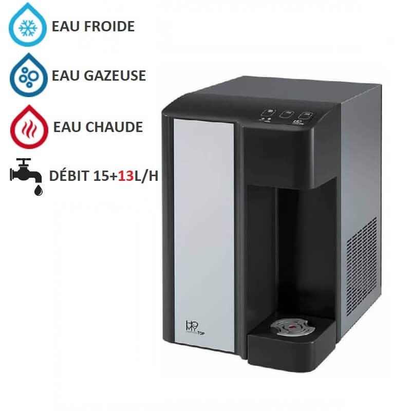 Thanks to its efficient cooling system with ice bank, the water fountain COSMETAL H2O MYTOPCHWG is capable of dispensing up to 15 liters of fresh still or sparkling water per hour, but also up to 13 liters per hour of hot water, ideal for serving tea! This direct expansion device connects directly to an 8mm or 3/4 water inlet, it will be recharged as it is used.