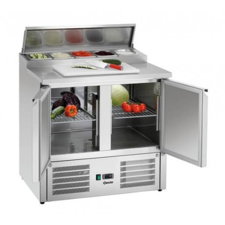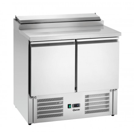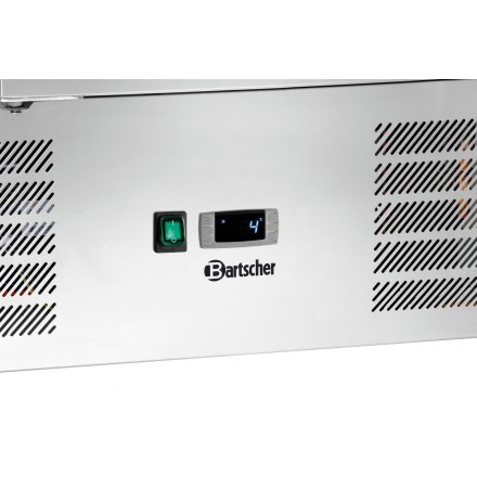 Ideal for serving sandwiches, salads, and raw vegetables, the Bartscher 900T2 preparation table is equipped with a large 260L refrigerated compartment closed by 2 doors< /span> with automatic closing, as well as a refrigerated tank that can hold 5 150mm GN1/6 containers (bins not supplied), closed with a stainless steel lid .