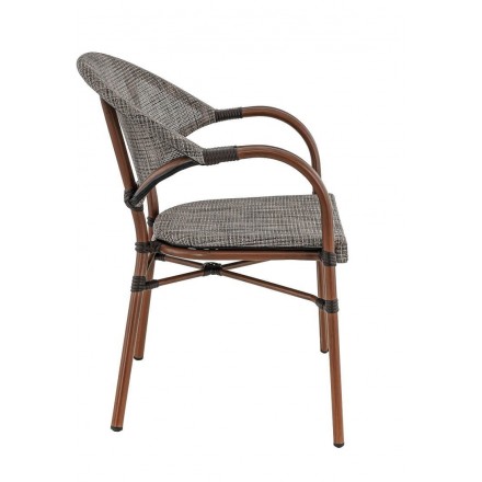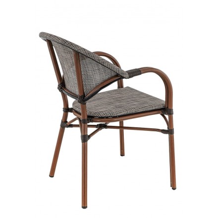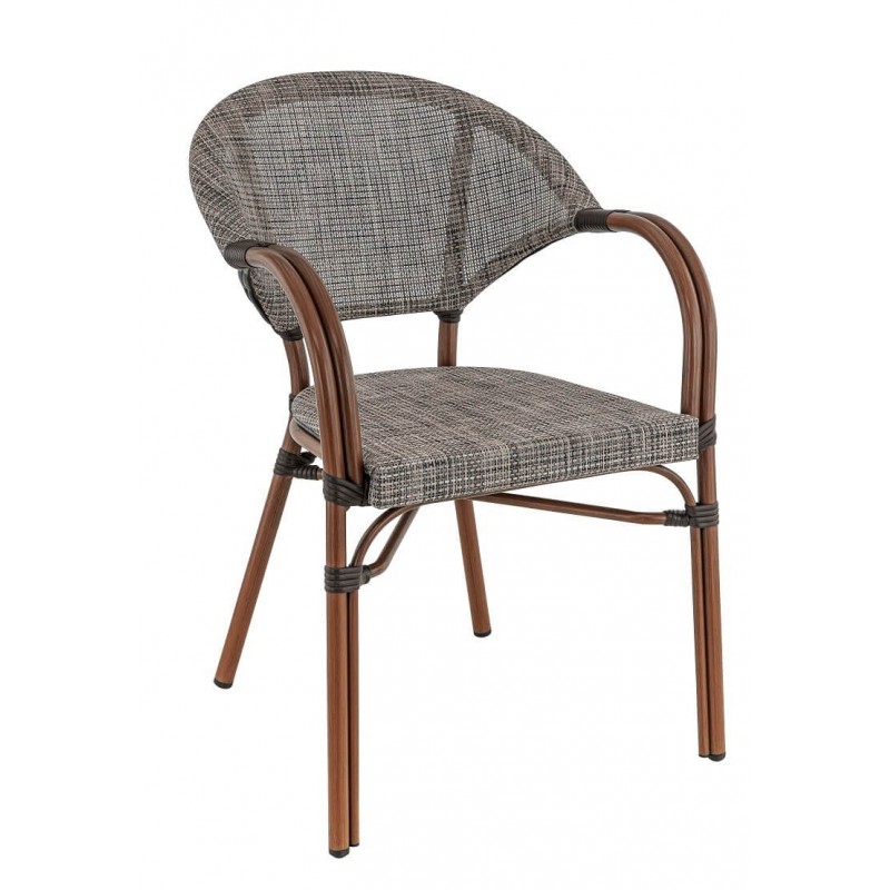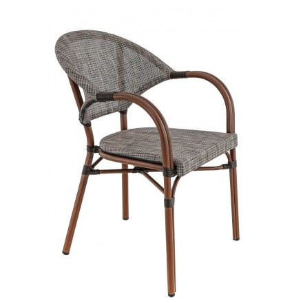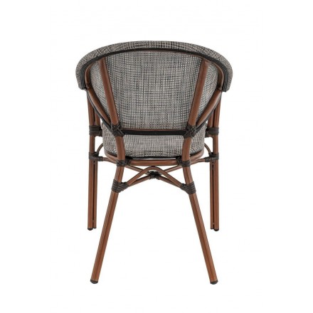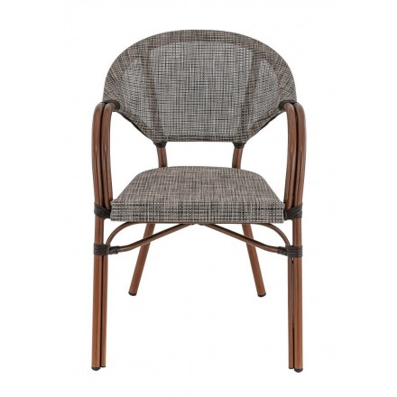 123.38 € TTCStackable Parisian armchair with aluminum structure covered with epoxy paint, seat and back in gray textilene, UV and rain resistant, seat height 46cm, armrest height 69cm, ideal for restaurant terraces