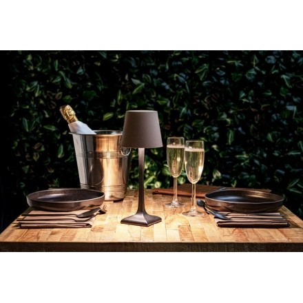 Cordless metal table lamp with low-energy white LED, touch switch, square metal lampshade, high-performance battery for 20 hours of autonomy, waterproof (IP54), can be used indoors or outdoors, weather-resistant, included USB cable supplied, complies with CE standards