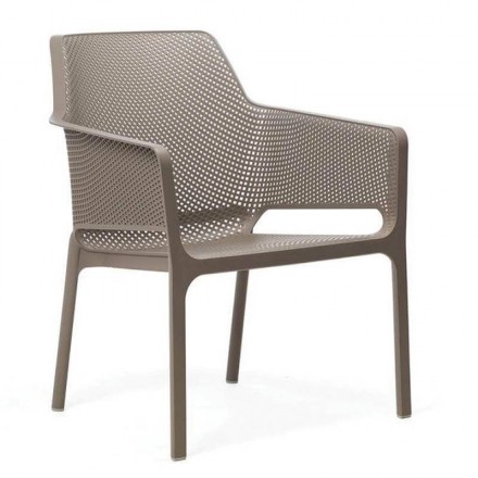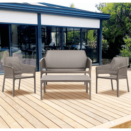 The PALMA garden lounge is designed especially for outdoor terraces and gardens, since its resin structure reinforced with fiberglass in taupe color is designed for weather and UV resistant.