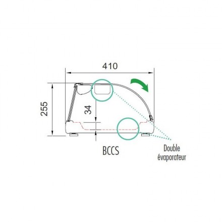 La vitrine à sushis CORECO permet la présentation de sushis directement dans 6 bacs gastro GN1/3 de 40mm de profondeur (fournis). Elle est équipée d'un double évaporateur statique haut et bas ainsi qu'une plaque froide, spécialement conçu pour la conservation et la présentation du poisson frais entre +0°C et 5°C.