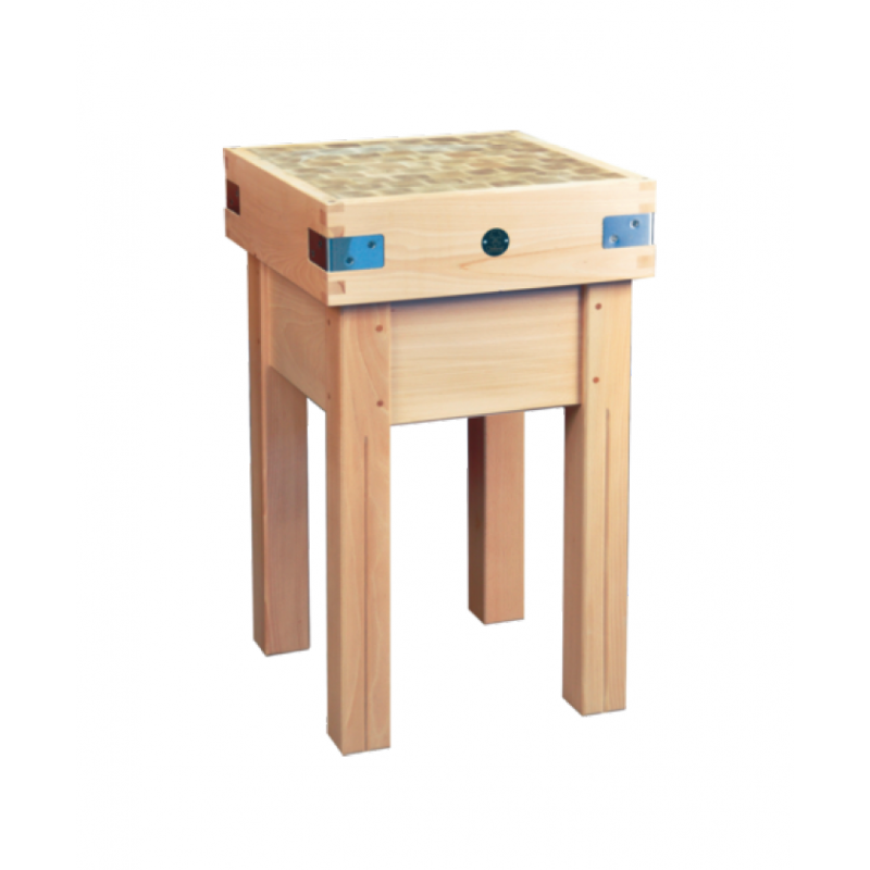 Indispensable pour les boucheries, charcuteries, laboratoires, poissonneries, et cuisines professionnelles en général, ce billot tout bois professionnel est conçu en bois de charme, et piétement avec tiroir et ceinture hêtre.