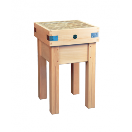 1,006.07 € TTCBillot de boucher tout bois avec dessus en charme bois debout réversible, piétement avec tiroir hêtre, ceinture hêtre sur le pourtour, équerres inox pour épaisseur 150 et 200mm, sans équerre pour épaisseur 100mm, plusieurs dimensions au choix