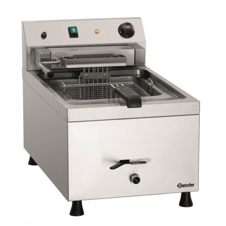 A robust appliance, this Bartscher 12L-10 electric fryer with 12 liter tank is particularly suitable for use in large professional kitchens. The oil drain valve, the removable grating and the tilting electrical resistance allow easy cleaning.