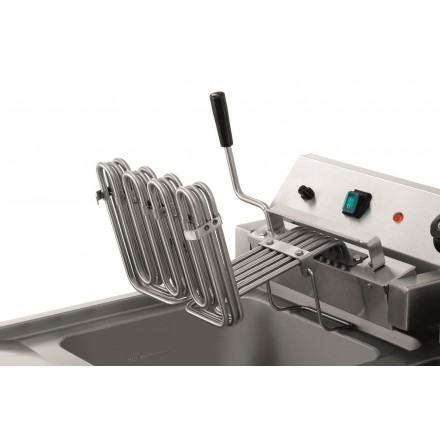 1,516.40 € TTCRobust professional electric fryer with 2 12-litre tanks, drain taps, separately adjustable temperature range from 50 to 190°C, cold zones, tilting electric heating elements for easy cleaning, safety thermostats, lids included - 400V 3NAC