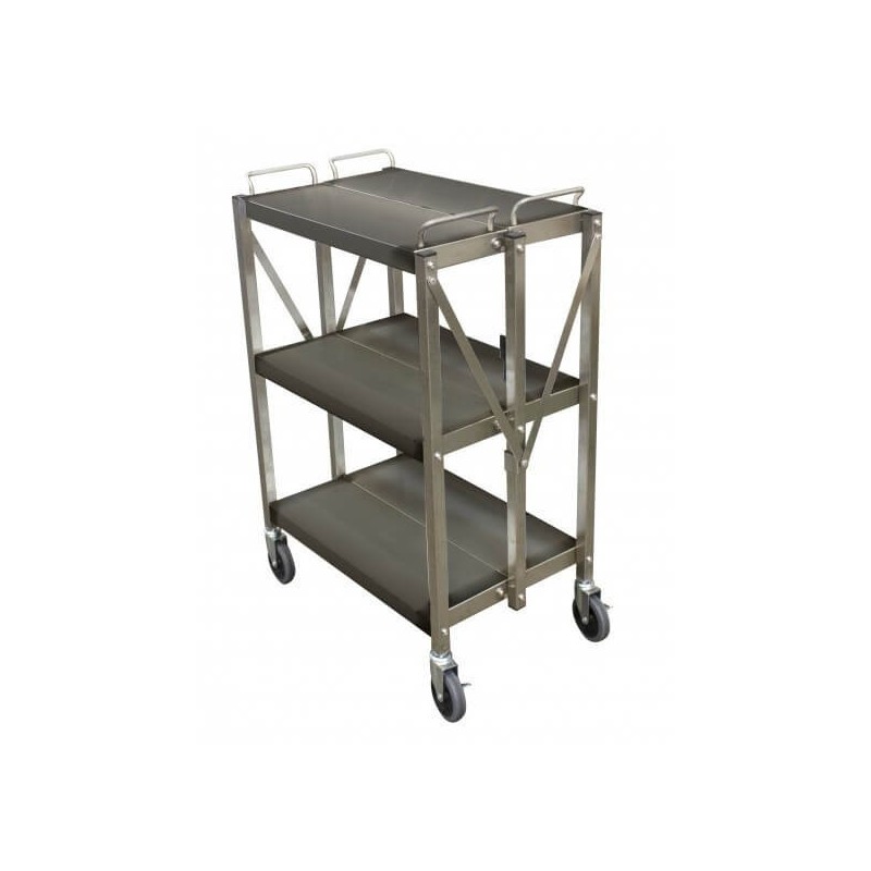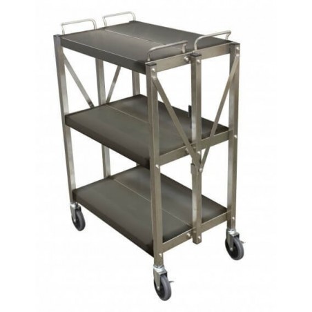 Fabriqué entièrement en acier inoxydable, le chariot de transport TS 200 supporte une charge de 100kg et dispose de 2 plateaux de 830x510mm.