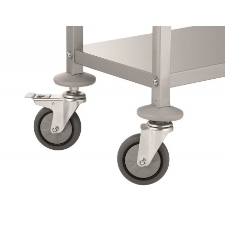 The trolley has 4 rubber castors with stopper pads, 2 of which have brakes.