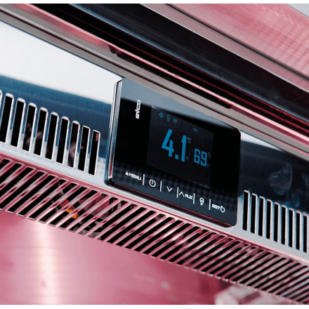 Cette vitrine est équipée d’une monocoque en inox et d'un intérieur entièrement en inox AISI-304, des caractéristiques qui rendent la structure compacte et élégante, tandis que les lumières LED roses internes ont été conçues pour mettre en valeur les marbrures et rendre les coupes invitantes à l’achat ou à la consommation.