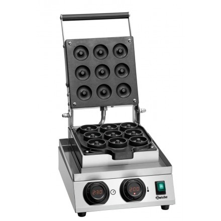 A great classic of fairgrounds, the professional MDI Donut 900 device from Bartscher allows you to make up to 9 donuts at a time with choux pastry or waffle dough (ø50xH20mm), which can be decorated with icing, chocolate , vermicelli and easily carried to be enjoyed while walking.