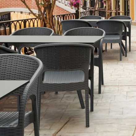 69.50 € TTCGarden chair in dark gray woven resin reinforced with fiberglass, has a high resistance to bad weather and UV rays, specially designed for outdoor terraces - seat height 45cm, weight 3.5kg