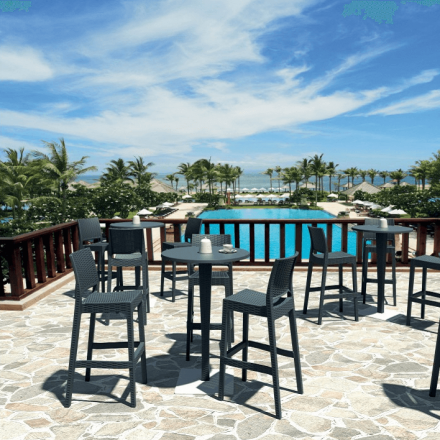 380.01 € TTCStackable garden bar chair in dark gray woven resin reinforced with fiberglass, has a high resistance to bad weather and UV rays, specially designed for outdoor terraces - seat height 76cm, weight 4.6kg