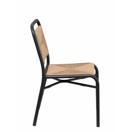 154.80 € TTCChaise de terrasse de restaurant avec structure en aluminium finition époxy, assise et dossier en polyéthylène torsadé, empilable (par 6), résistant aux UV et aux intempéries, idéal pour une utilisation en terrasse, hauteur d'assise 46cm, épaisseur tube 1.8mm, diamètre tube 28mm