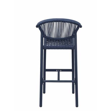 166.80 € TTCChaise haute d'extérieur pour terrasse de restaurant, structure en aluminium finition époxy, assise et dossier tressé en PE imitation corde, résistant aux UV et aux intempéries, hauteur assise 75cm